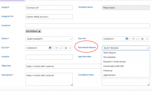 Some times you may need to Re-schedule a Call. To do this, simply click on the Phone Icon next to the company name. Amend the date to suit your needs and complete the Re-schedule reasons as below, then click Save.