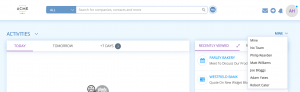 You can also view your colleagues Activities by amending the View. On the right hand side of the system you have a drop down. This initially will say Mine, click the drop down and the list of teams and individual members will appear. Choose the team member you require and view the information.