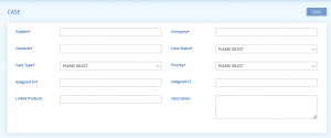 Here you will see a blank Cases page to complete, Complete the mandatory fields and any others the business requires. You can Assign to another colleague, CC a colleague who needs to be made aware of the Case and Link Products.  Once complete simply click Save at the top right hand corner.