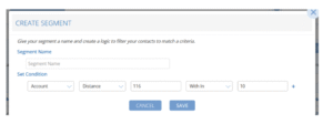 Segments can now be created to include contacts based on distance from a particular postcode.
